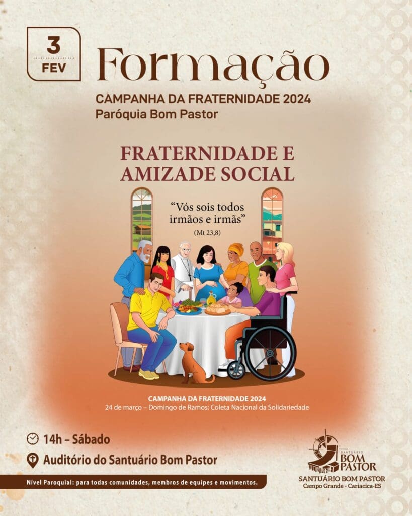No próximo dia 03, acontecerá a Formação Paroquial em preparação para a Campanha da Fraternidade 2024. Que tem como