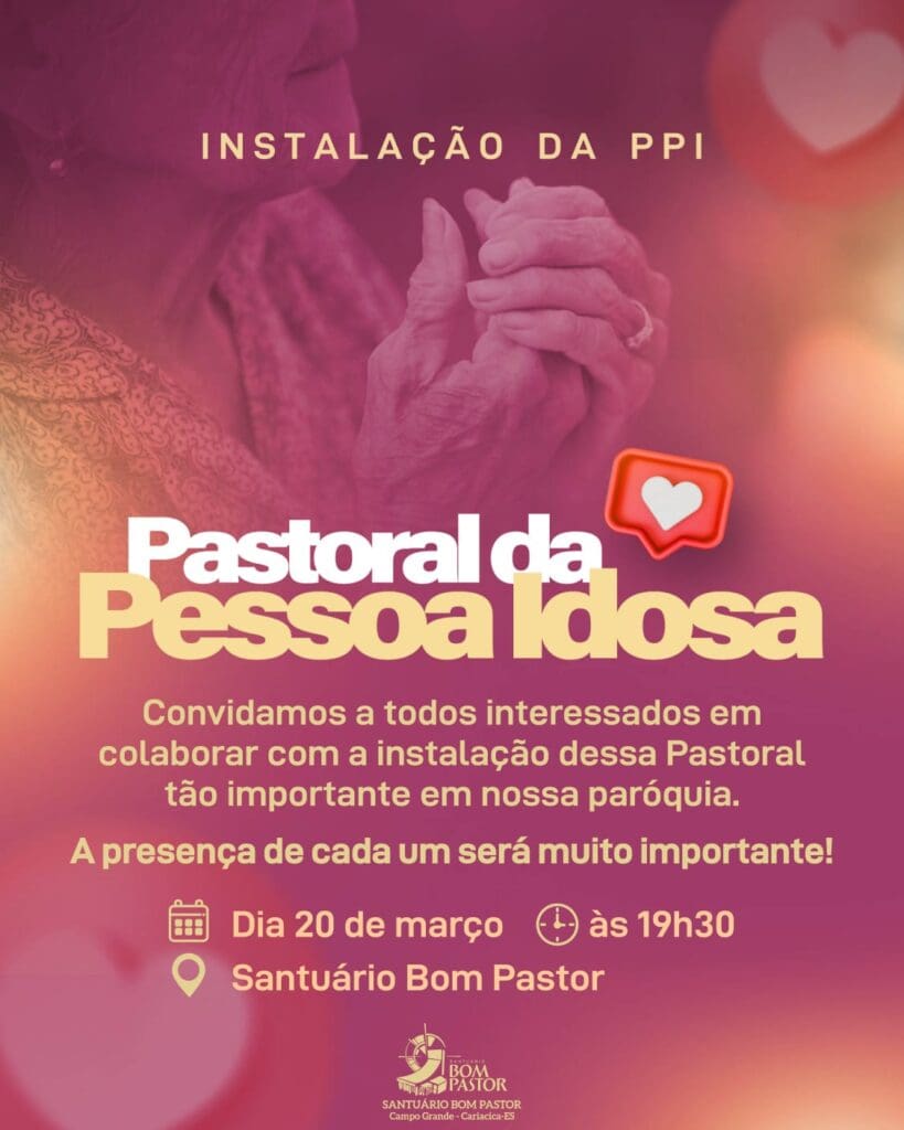 No dia 20 de março, às 19h30, teremos a Instalação da PPI – Pastoral da Pessoa Idosa. Que tem
