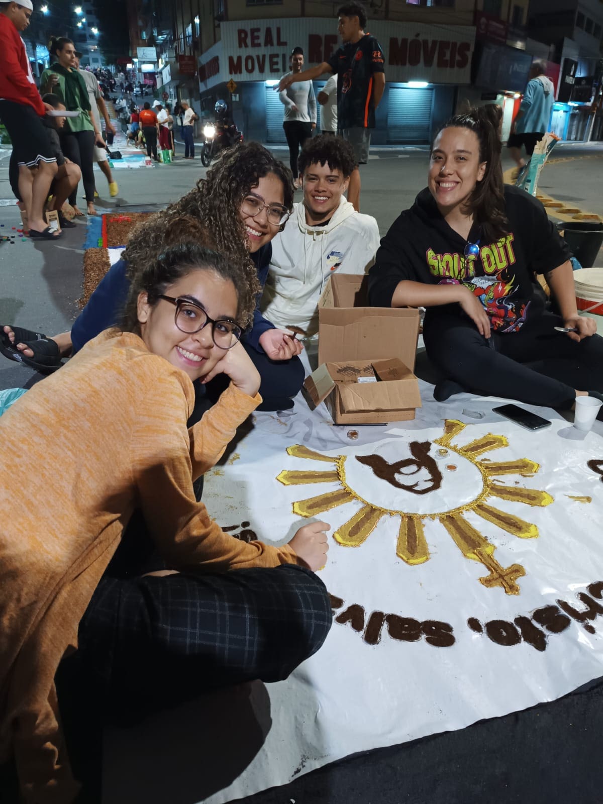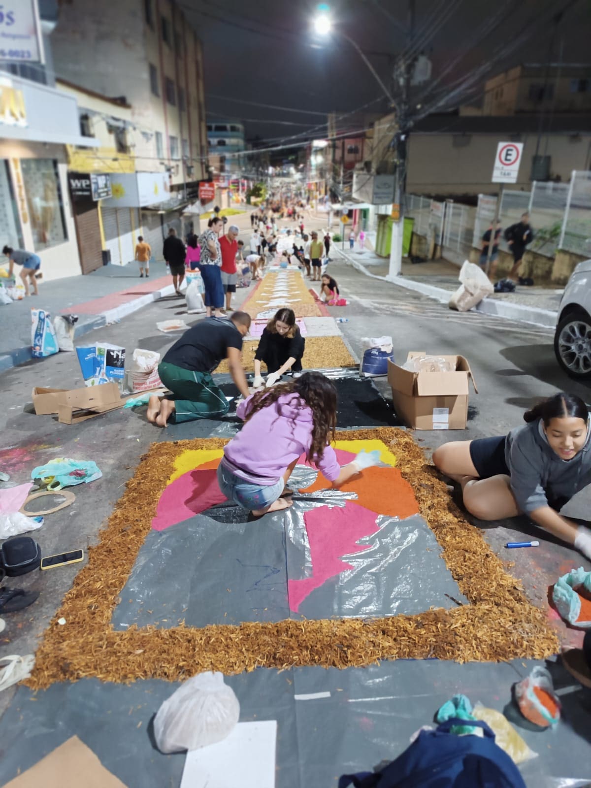 A confecção dos tapetes se iniciará simultaneamente para todos os grupos, após a missa do dia em que antecede a Solenidade e após a colocação das lonas.