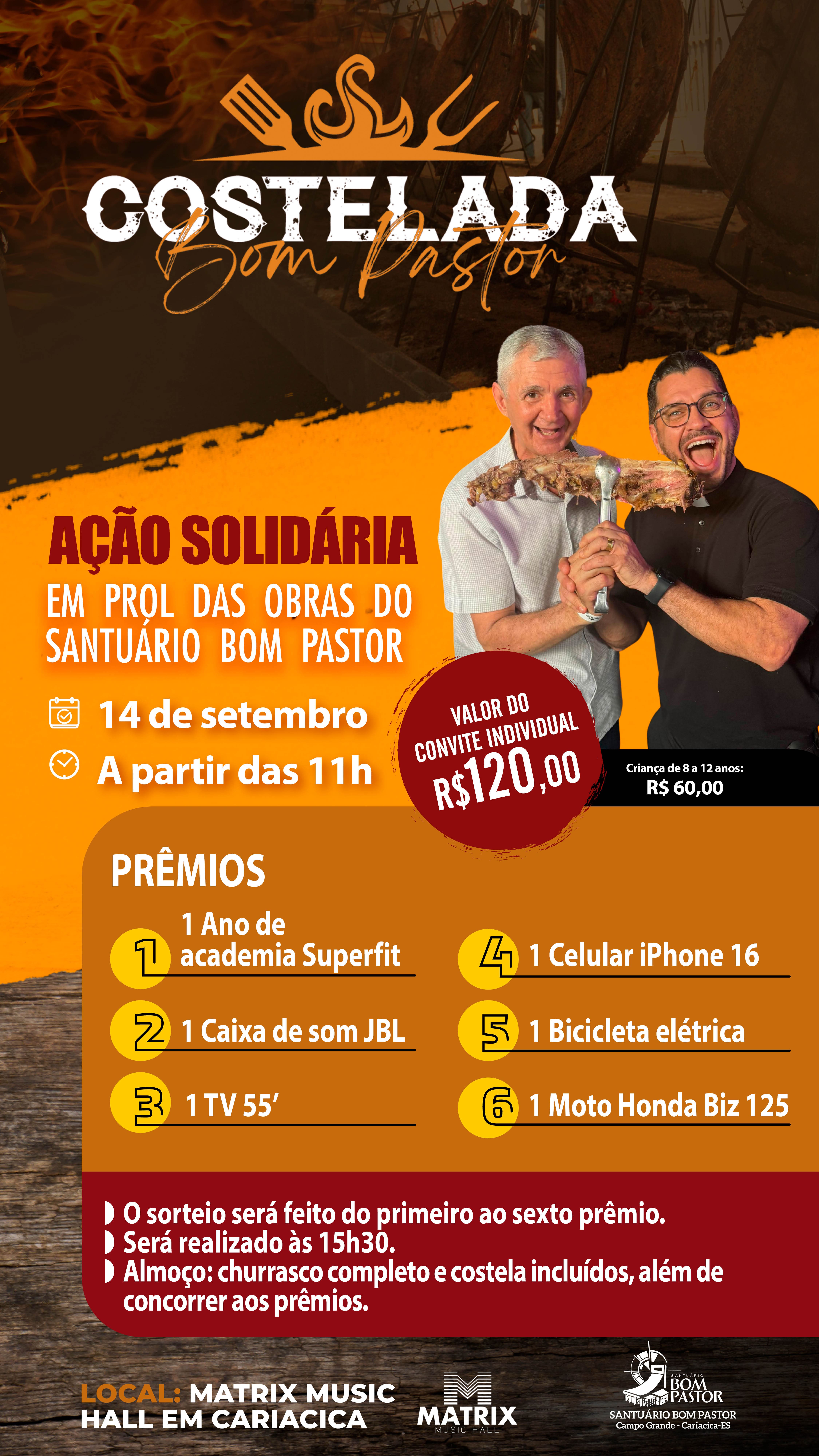 Este ano, a costelada irá acontecer no dia 14 de setembro, no Matrix Music Hall em Cariacica. Ao adquirir o ingresso inteiro, automaticamente o convidado concorre aos prémios: