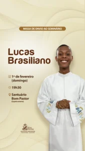 Com muita alegria, convidamos a todos, para a Missa de Envio do Seminarista Lucas Brasiliano, proveniente desta paróquia.