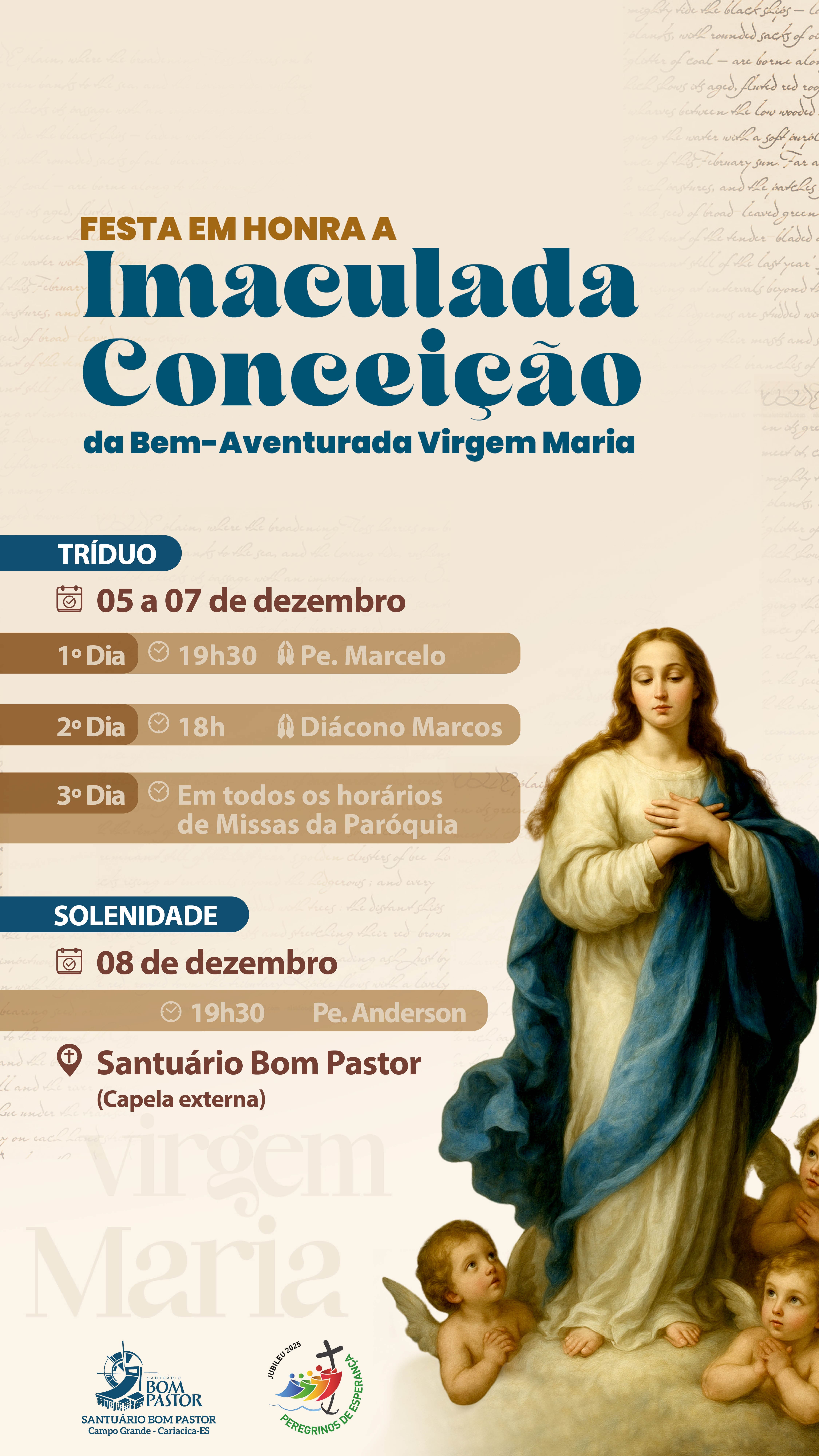 3º Dia do tridúo: 07 de dezembro – Em todos os horários de Missa e Celebração da Paróquia
