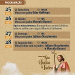 No sábado (26), após a Missa, terá barraquinhas e música ao vivo. Veja a programação completa e venha participar conosco!