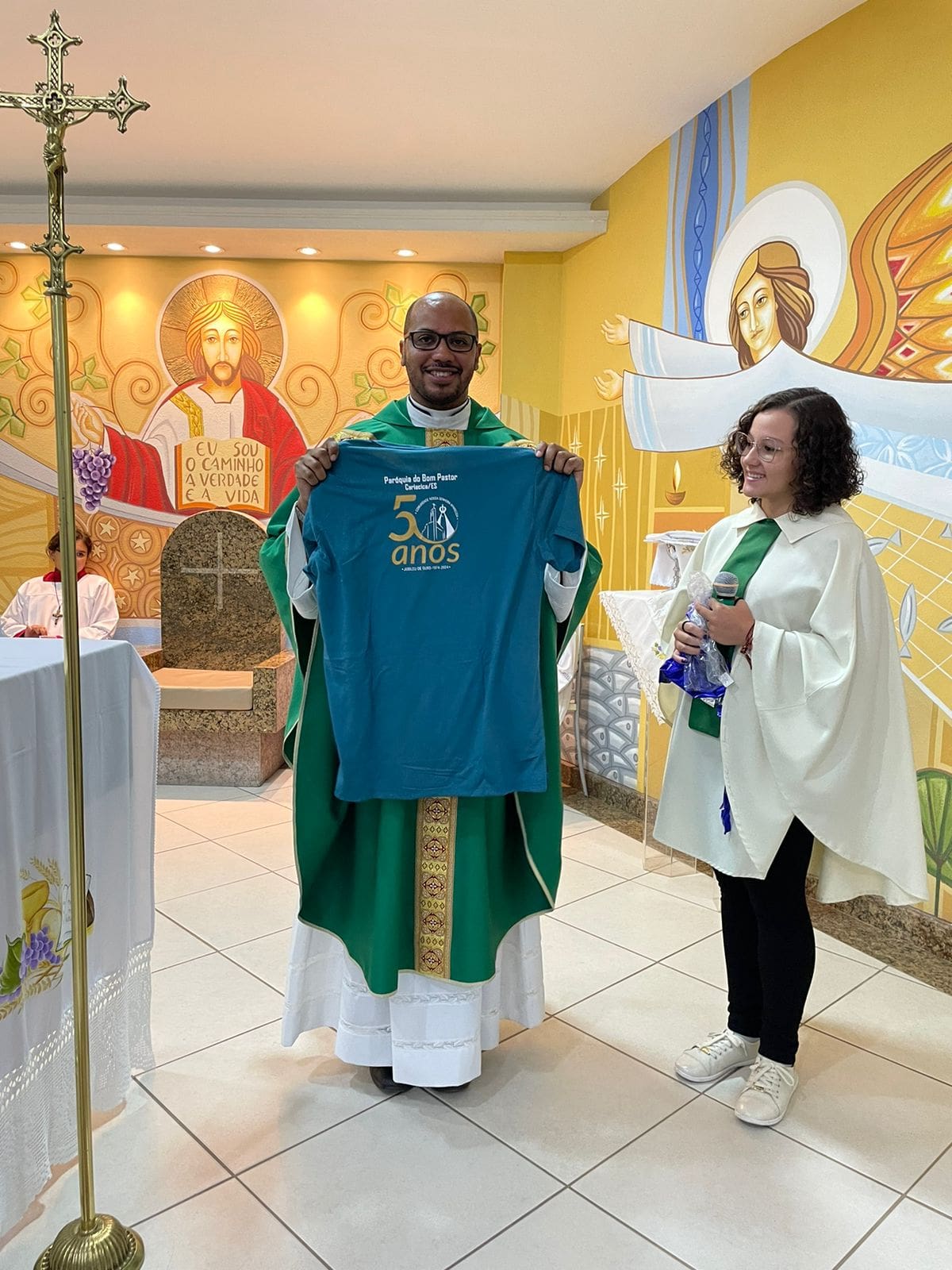 Para esse grande momento, já estão a venda as camisas em comemoração a essa data tão importante. Para adquirir, basta entrar em contato com a secretaria paroquial ou na própria comunidade.