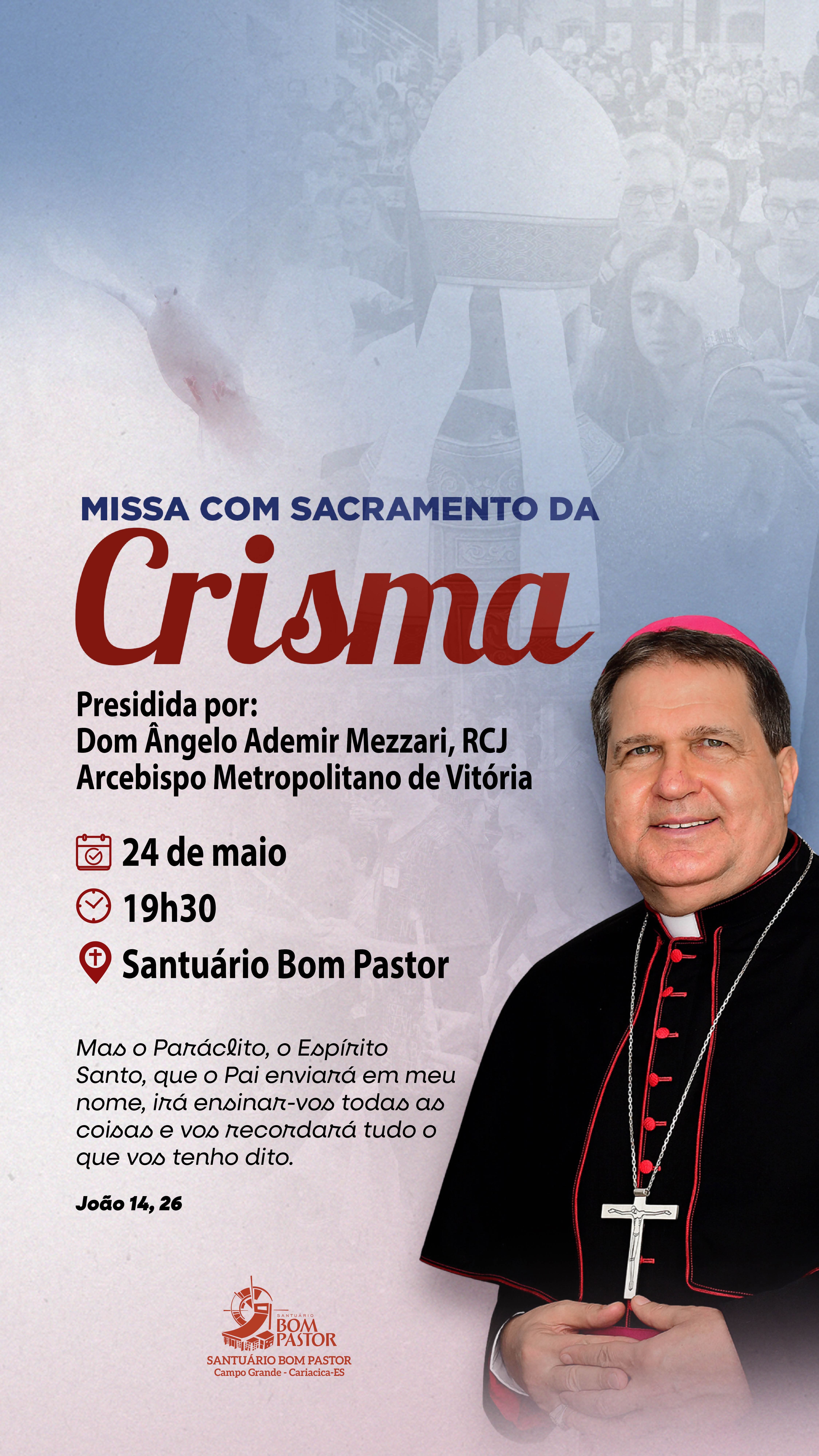 No dia 24 de maio às 19h30, nossa paróquia estará em festa, pois, alguns jovens e adultos receberão o Espírito Santo de Deus, por meio do Sacramento da Crisma.